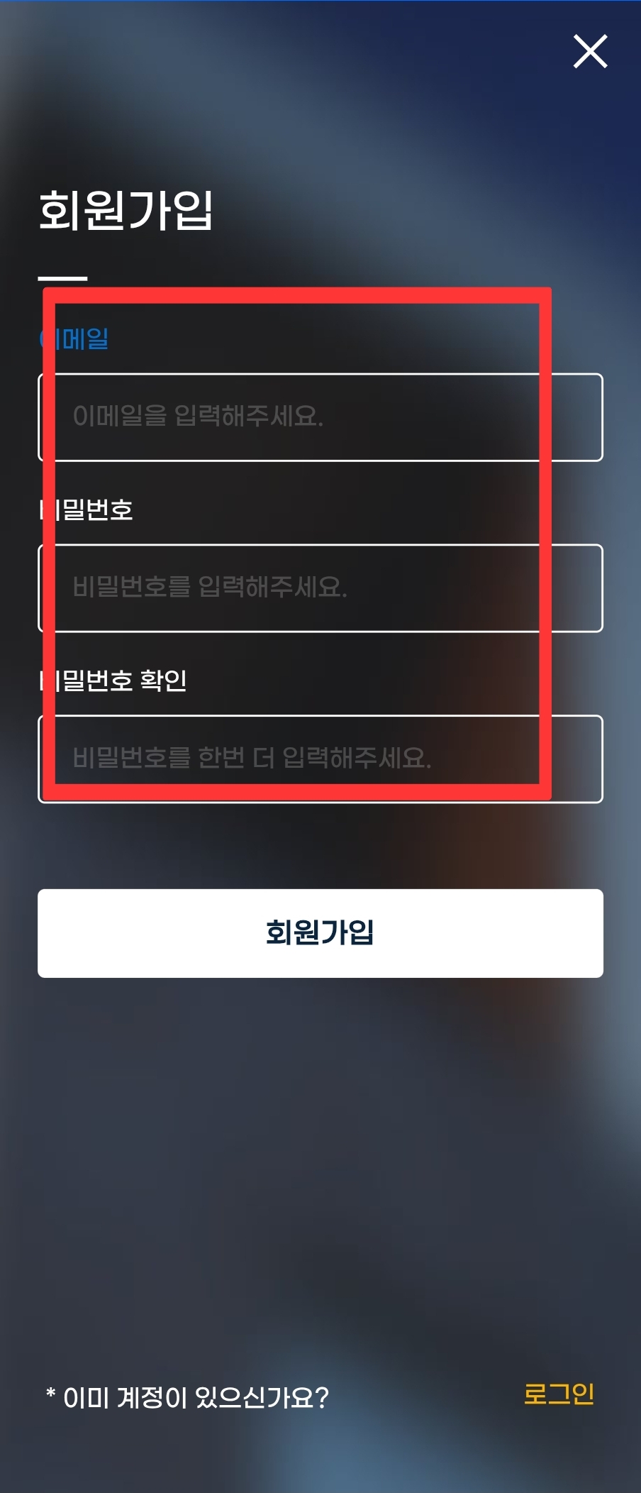 ※ 가장 먼저 앱 다운로드 하시고 설치후에 이용 약관 동의 → 이메일과 비밀번호 입력 하여 회원가입을 하시면 됩니다.