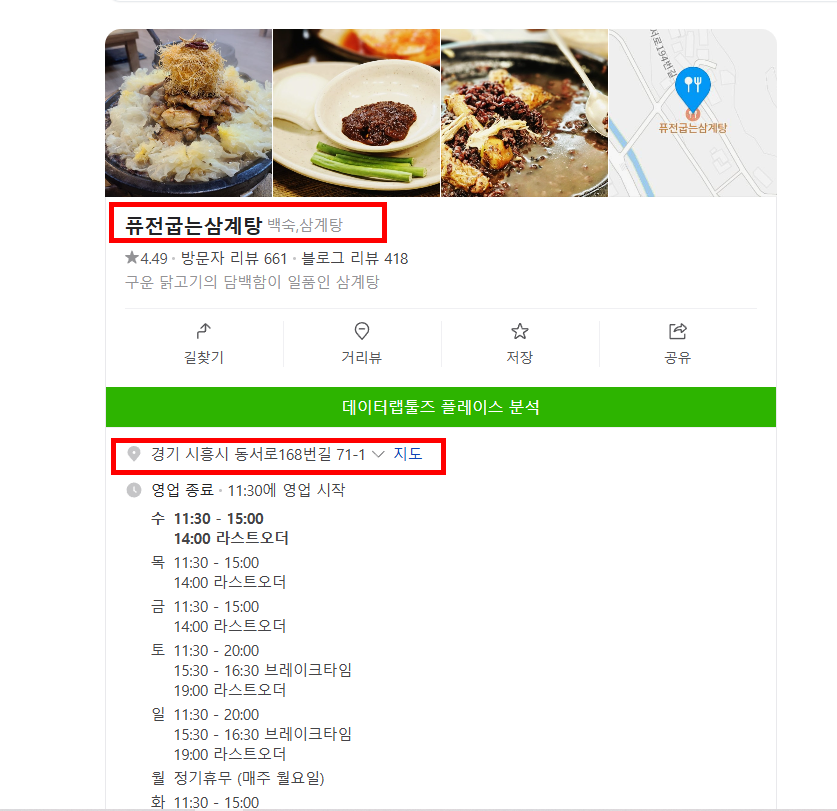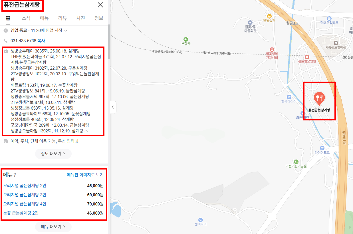 4. 눈꽃삼계탕, 매장 정보 및 위치