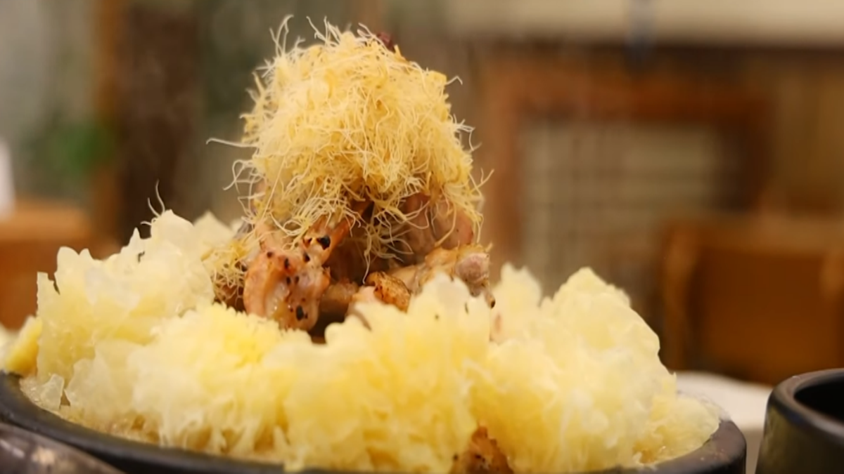 눈꽃삼계탕은 은이버섯이 닭을 둘러싸고 있는 비주얼이 인상적입니다. 은이버섯은 눈꽃과 비슷한 모양을 하고 있어서 시각적인 즐거움까지 더해주죠. ‘맛있는 녀석들’에서는 은이버섯의 향이 은은하게 나면서 숯불소금구이 치킨 같은 조합이라고 표현했어요.
