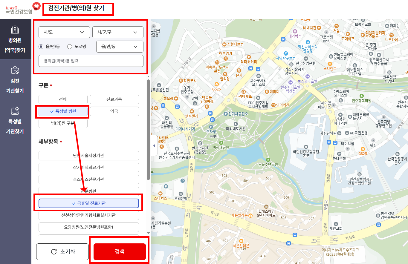 2. 일요일 진료 병원 찾기