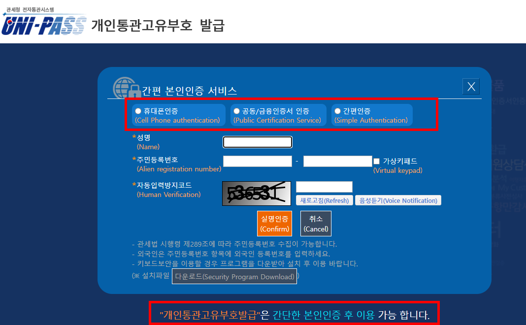 만약 본인 명의의 휴대폰이나 공인인증서가 전혀 없다면, 가까운 세관을 직접 방문해 발급받을 수 있습니다. 다소 번거롭지만 유일하게 선택할 수 있는 방법이 되기도 합니다.