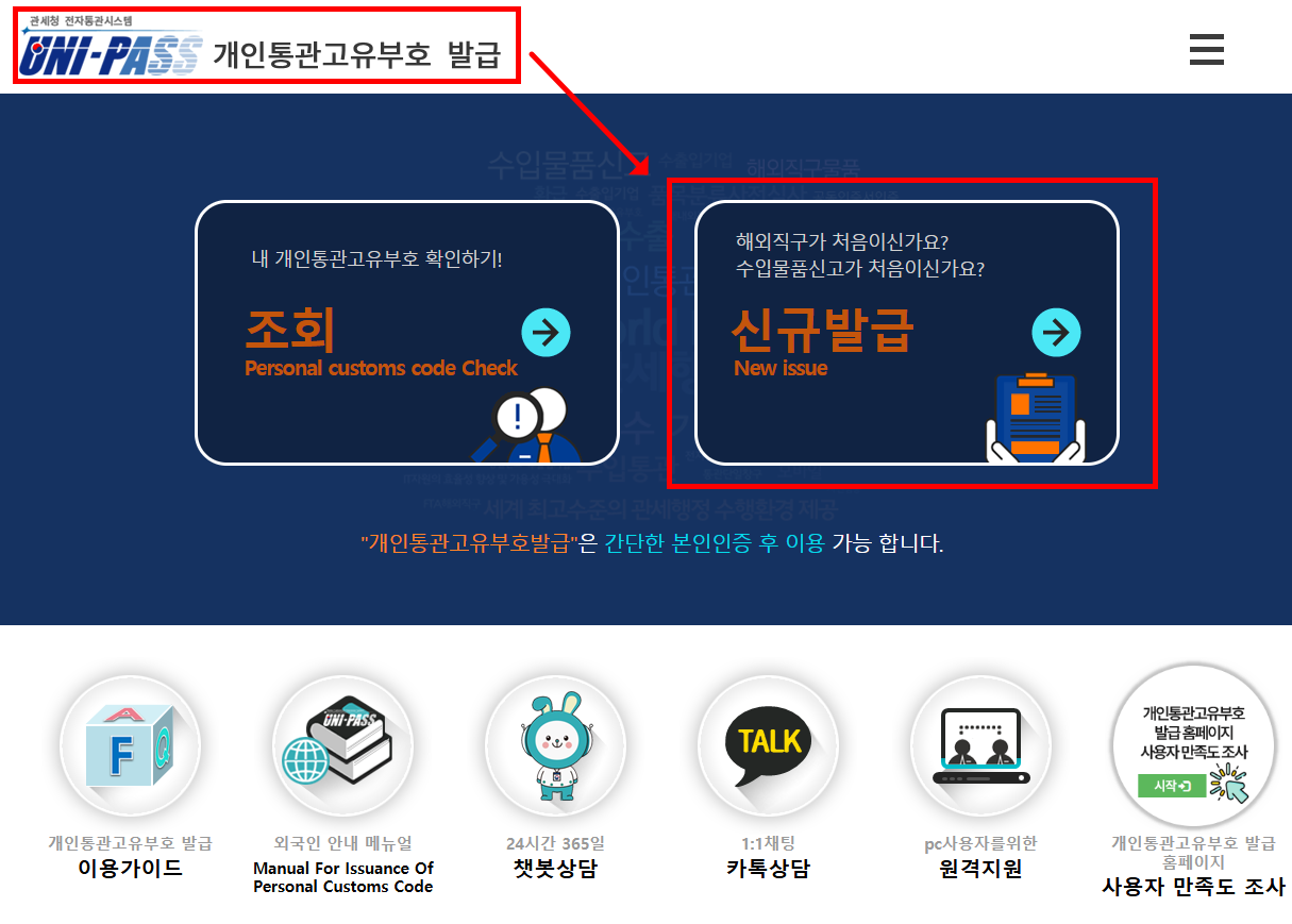 두 번째는 관세청 유니패스 사이트에 접속해 발급받는 방법입니다. PC를 자주 사용하는 분들이나 큰 화면에서 안전하게 절차를 밟고 싶은 분들께 적합합니다.